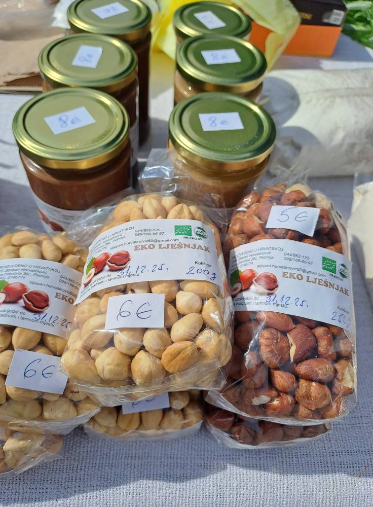 U ponudi će biti kravlji, kozji i ovčji sirevi, jogurti, mlijeko, maslac, suhomesnate prerađevine, svježe EKO meso, med, kokošja jaja, batat, slastice, brašna, lješnjaci i namazi od lješnjaka, ukiseljeno povrće, pesto od medvjeđeg luka, marmalade, sirupi i sokovi, mikrobilje i liofilizirano voće i povrće, tikve, kruh, riblje delicije, krumpir, pomidor, kapula, češnjak, tikvice, krastavci, balancani, paprika, koraba, kelj,ljekoviti proizvodi od konoplje, mladi kupus, salate, tjestenine i još ponešto.