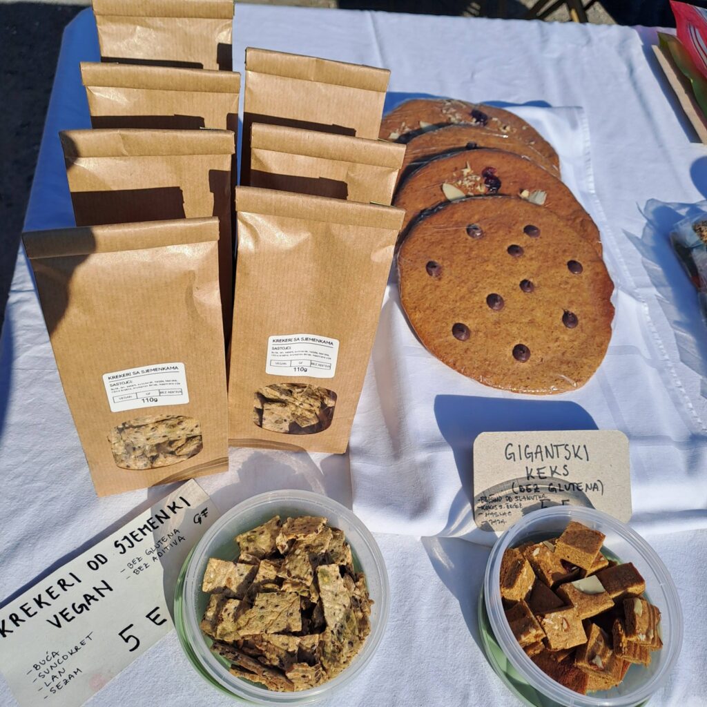 Obzirom da se biži Uskrs, u ponudi 15 sudionika biti će i šunka, luk, jaja, blitva, kelj, kupus, kapula, mrkva, cikla, peršin, svježe EKO meso, glavice salate, potočarka, riga, rezani mix salata, jabuke, sokovi, sirupi, marmelade, povrtne prerađevine, liofilizirani proizvodi i mikro bilje, sirevi, jogurti, maslac, suhoimesnate prerađevine, batat, slane i slatke slastice i još puno svega. Sa nama je i OPG Labaš sa ponudom svježih ljekovitih gljiva. U ponudi će biti i ponuda za vegane i vegetarijance sa izvanrednim proizvodima Kolektiva Pametna hrana i razmjena sjemena Vrtlarske sekcije Crvenog križa Grada Opatije.